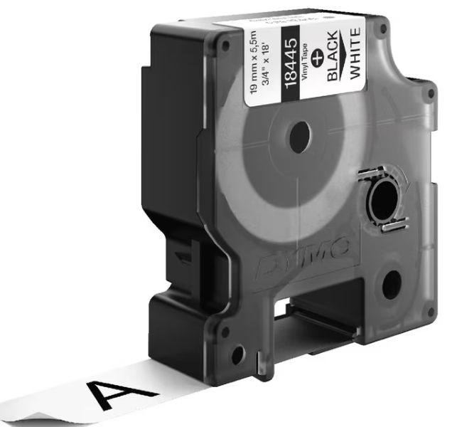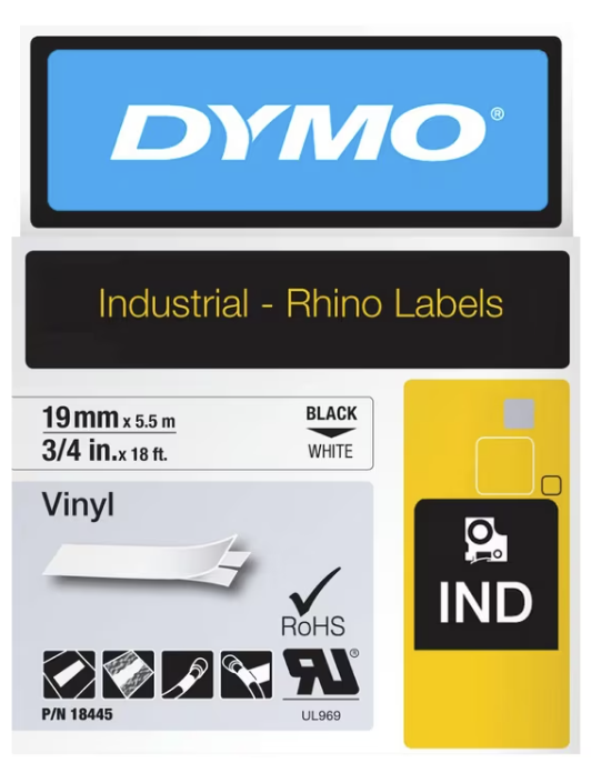 Dymo Rhino 18445 Permanent Vinyl Tape 19mm Black on White Each