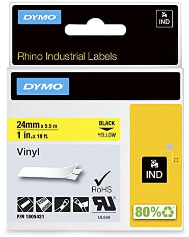 Dymo Rhino Flexible Industrial Labels Black on Yellow 24mm Each