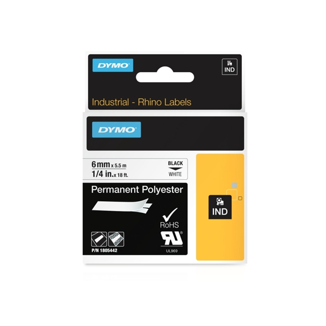 Dymo Rhino Industrial Labels Permanent 6mm Black on White