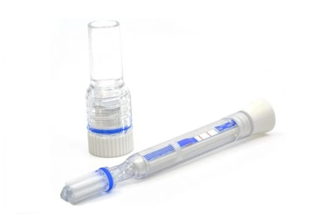 • 3 - Insert the saliva test pen into the base