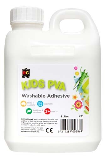 Educational Colours Kids Glue PVA Washable 1L White Adelaide Direct Stationers