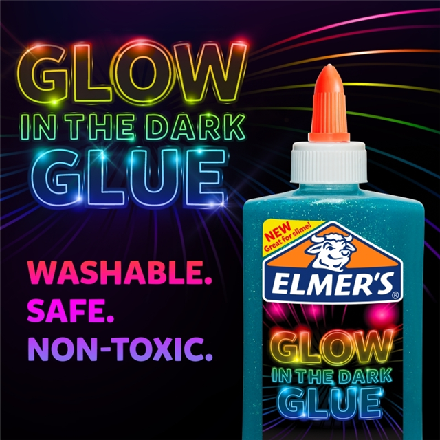 Elmers Glow in the Dark Liquid Glue 147ml Blue Bx3 is washable glue that comes in luminous neon color ideal for arts and crafts! Whether used for decorating, painting, gluing, and making slime, this glow glue allows for endless creativity.
