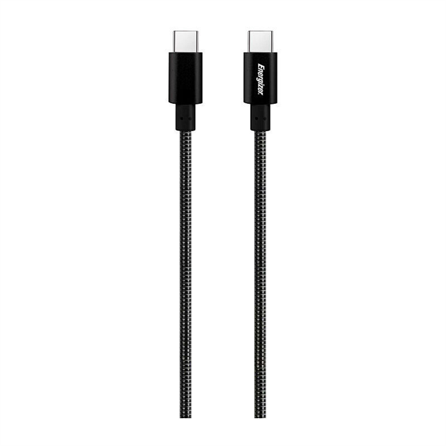 The Energizer 1m Metal USB-C to USB-C Cable provides fast and reliable charging and data transfer for compatible smartphones, tablets, and laptops