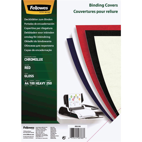 Fellowes Binding Covers Gloss A4 Red 100 Pack Adelaide Direct Stationers