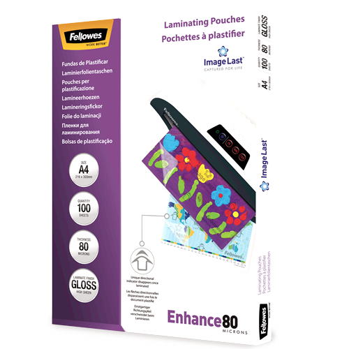 Fellowes Laminating Pouch Gloss 80micron A4 Clear 100 Pack Adelaide Direct Stationers