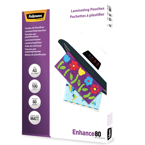 Fellowes Laminating Pouch Matte 80micron A3 Clear 100 Pack Adelaide Direct Stationers