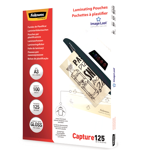 Fellowes Laminating Pouches 125 Micron A3 Gloss 100 Pack Adelaide Direct Stationers