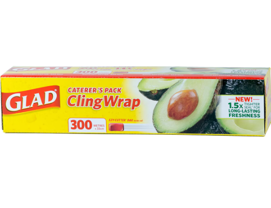 • Glad Caterer's Cling Wrap provides a secure, tight seal that keeps air out, locking in freshness and preventing unwanted odours from escaping