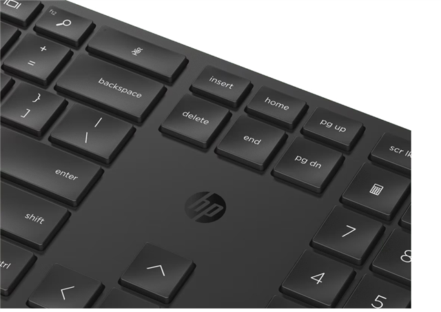 The HP 655 Wireless Keyboard offers a full-size layout with quiet, responsive keys for comfortable typing