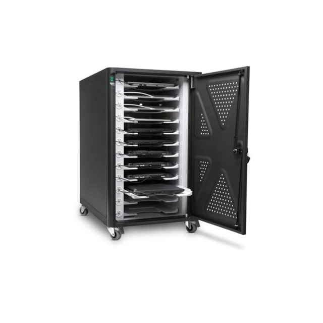 The Kensington AC12 Charging Cabinet is designed to safely store and charge up to 12 tablets, smartphones, or other mobile devices