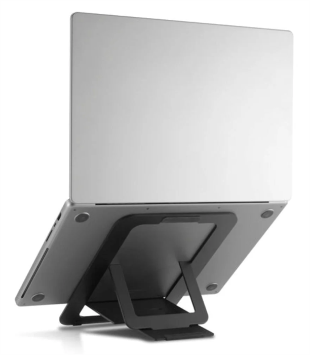 Raises laptop for more ergonomic viewing height | Helps improve posture and desk comfort | Adjustable positioning supports different setups | Creates desk space under the stand for accessories | Useful for home office or workplace desks