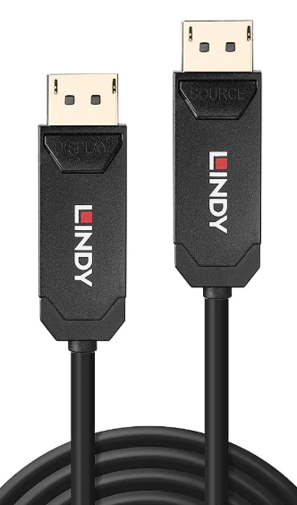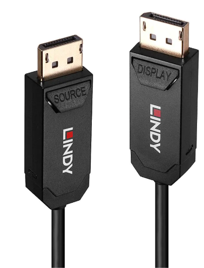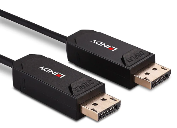 High-performance fibre optic cable for ultra-long DisplayPort connections.