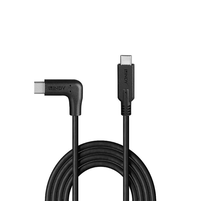 The Lindy 1.5m USB 3.2 Type A to Type C Right-Angle Cable supports transfer speeds up to 10Gbps and efficient charging for compatible devices