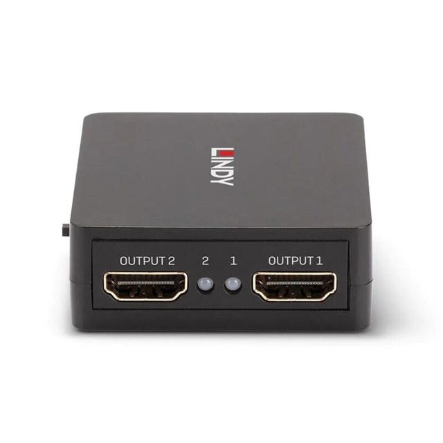The Lindy 2 Port HDMI 18G Splitter is a durable, miniature HDMI 2.0 device that replicates a single HDMI input across 2 HDMI outputs
