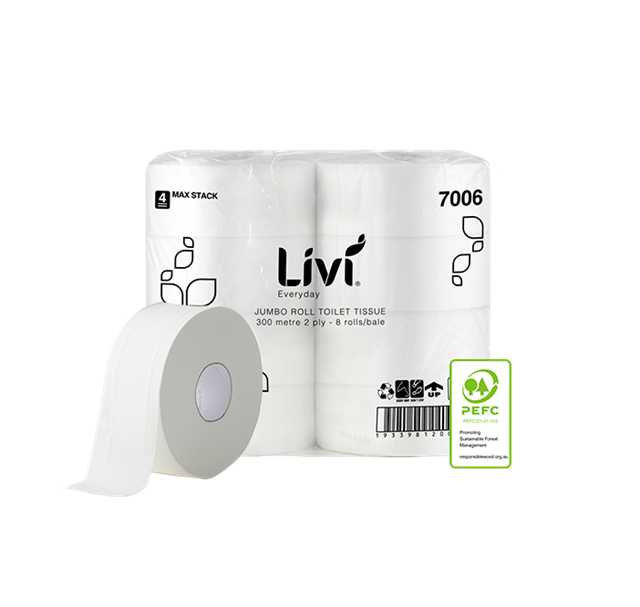 Livi 7006 Everyday Jumbo Toilet Roll 2 Ply 300m Carton 8 (48 per Pallet) Adelaide Direct Stationers