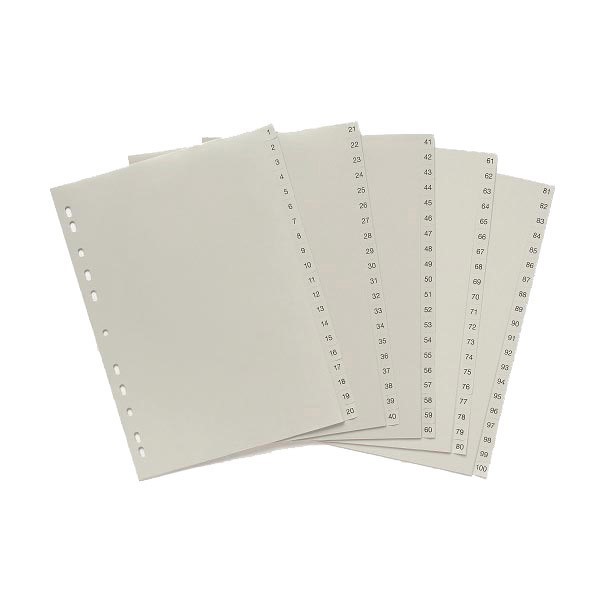 Marbig Dividers 1 to 100 Tab PP A4 Grey Adelaide Direct Stationers