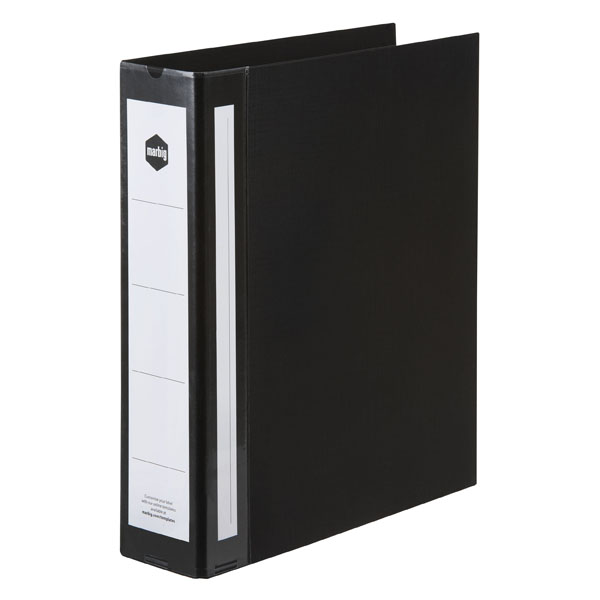 The Marbig deluxe ring binder features oversized covers to accommodate dividers and sheet protectors.