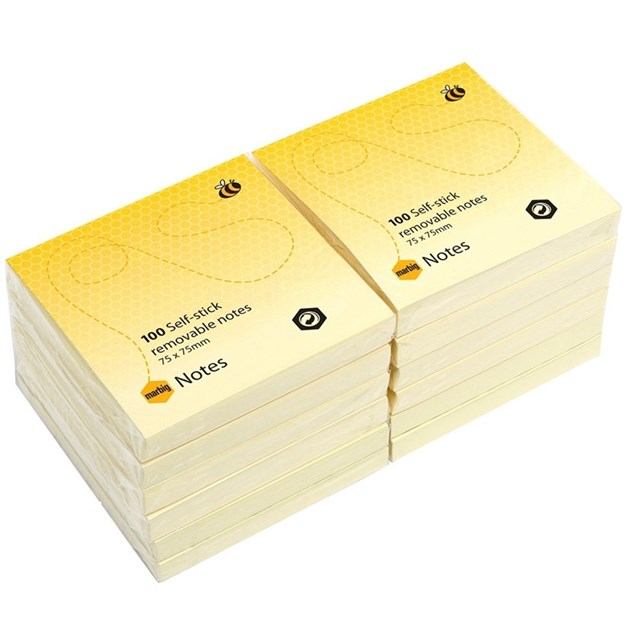 Marbig Stick On Notes 76 x 76mm Yellow Each (Sold as Each, 12 in a Pack) Adelaide Direct Stationers