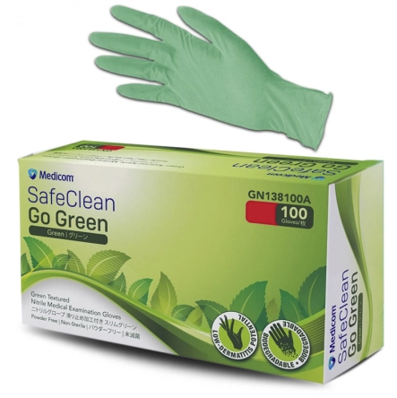 Medicom SafeClean Go Green Nitrile Exam Gloves Powder Free X-Large Green 100Pk Adelaide Direct Stationers