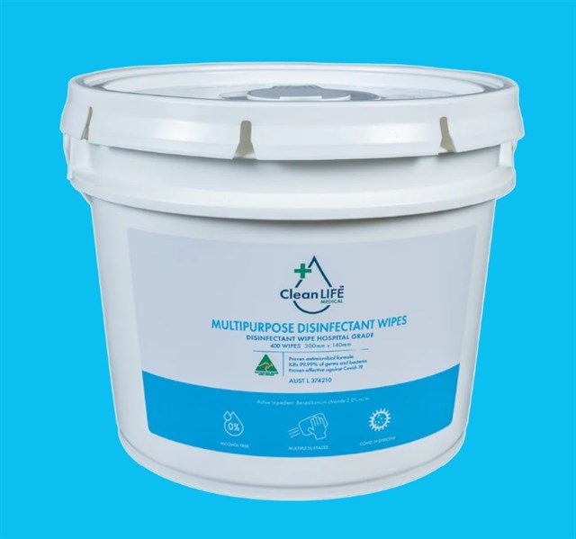 • Each tub contains 400 large wipes (180 x 260mm), impregnated with a low-level biocide featuring Benzalkonium Chloride (0.4% w/w) and EDTA (0.2% w/w)