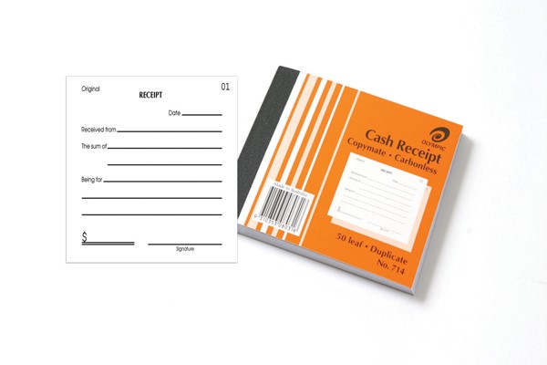 Olympic 714 Cash Receipt Duplicate Book Orange (Sold as Each, 20 in a Pack) Adelaide Direct Stationers