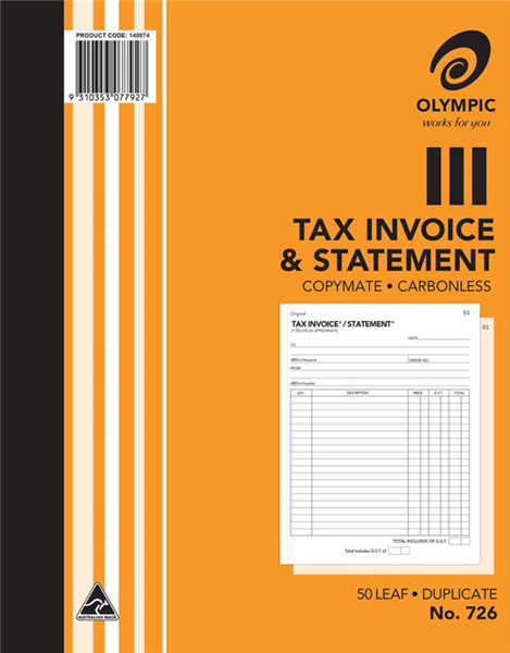 Olympic 726 Invoice and Statement Book Duplicate (Sold as Each, 5 in a Pack) Adelaide Direct Stationers