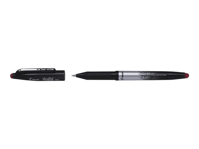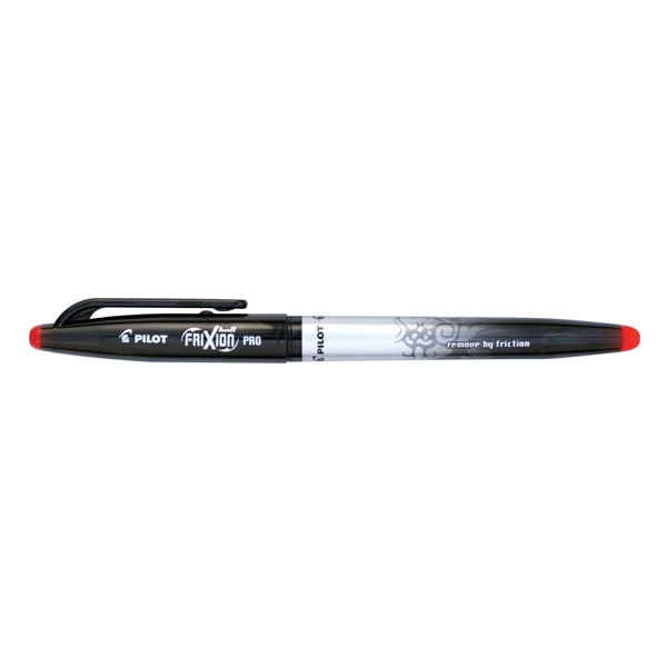 Pilot Frixion Pro Erasable Red gel pen features a unique thermosensitive ink which turns clear when rubbed with the end stud and has no eraser debris or paper abrasion