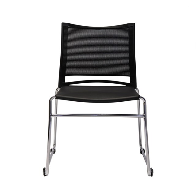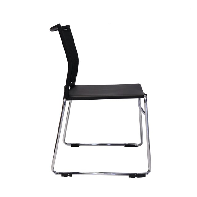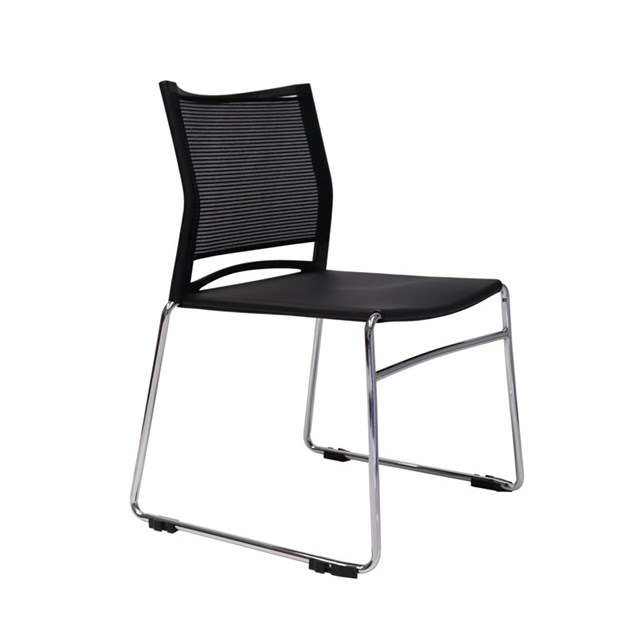 Stackable Mesh Back Visitor Chair - Black Black Mesh Back Rest with Black Heavy Duty Polypropylene Seat Pan Linking Mechanism Built Into Chrome Sled Base 110kg Weight Rating 5 Year Warranty