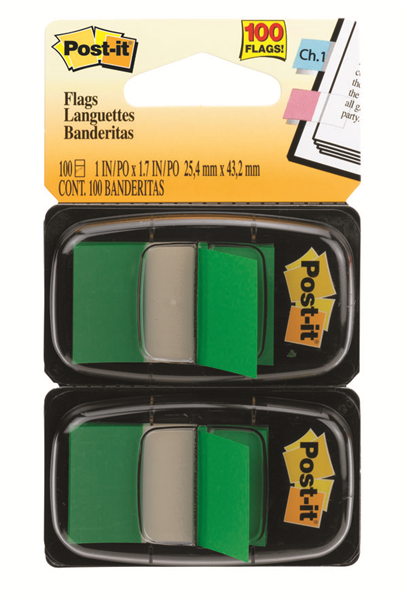 Post It Flags in Green and 1 in wide size are easy to spot and have space to write short notes.