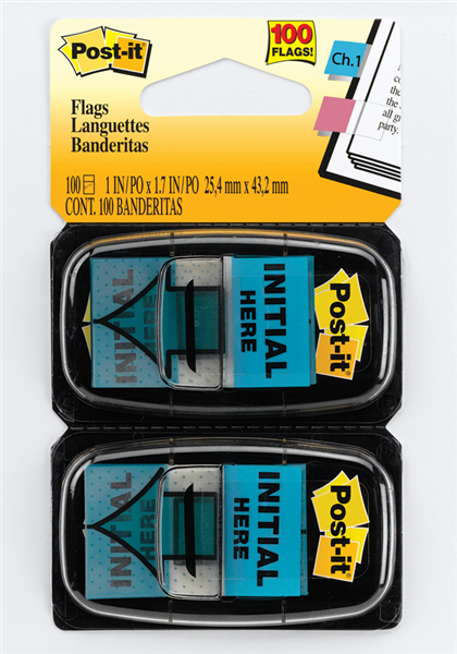 Post It Message Flags with Initial Here messaging in Blue and 1 in wide size are great to show where to initial on documents so the fine details dont get missed.