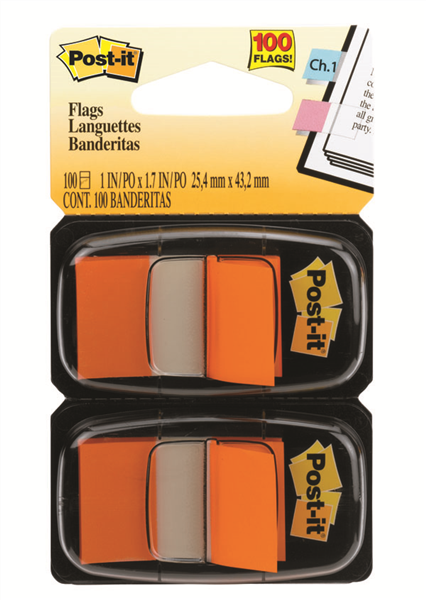 Post It Flags in Orange and 1 in wide size are great to mark information in a book, document or manual for later reference
