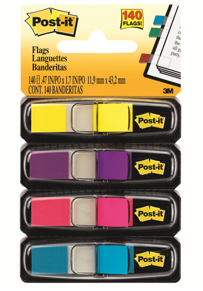 Post It Flags in assorted Bright colors and and has 47 inch wide size are great to mark bills, documents and pages in books for easy reference.