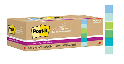 Post-it Super Sticky Recycled Notes 76mmx76mm Pk12 Adelaide Direct Stationers