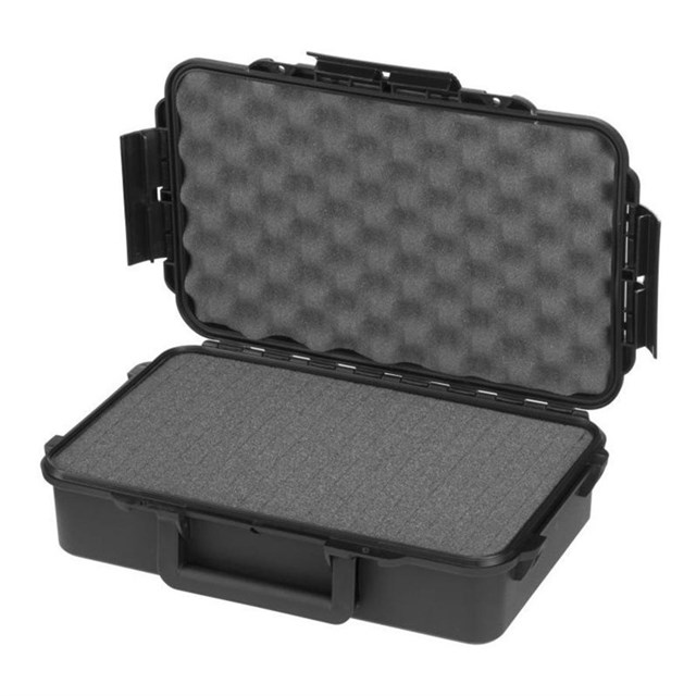 • The case is made of durable polypropylene copolymer and features a watertight seal, an automatic pressure release valve, and cubed foam to secure contents