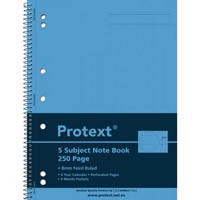 Protext Spiral Notebook A4 5 Subject 250 page (Sold as Each, 5 in a Pack)