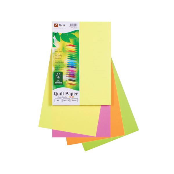 Quill Copy paper A4 80gsm Flouro Assorted 250 Pack Adelaide Direct Stationers