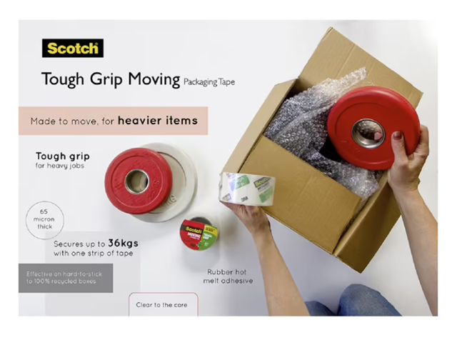This Scotch Moving Tape is designed to seal heavy boxes weighing up to 36 kg making it ideal for when you're transporting packages or moving house
