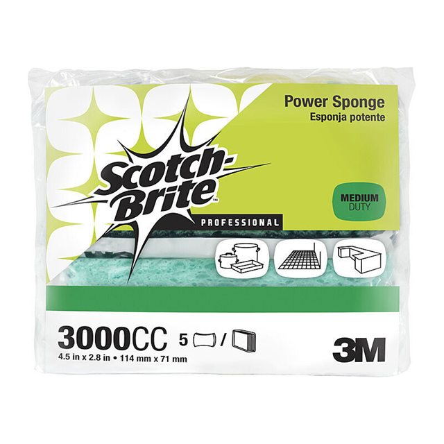 The Scotch-Brite 3000 Power Sponge combines a durable scouring surface with an absorbent sponge for versatile cleaning performance