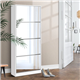 • The mirror front of the closed compartments becomes a clear and bright full-length mirror for convenient match-ups of clothes and shoes