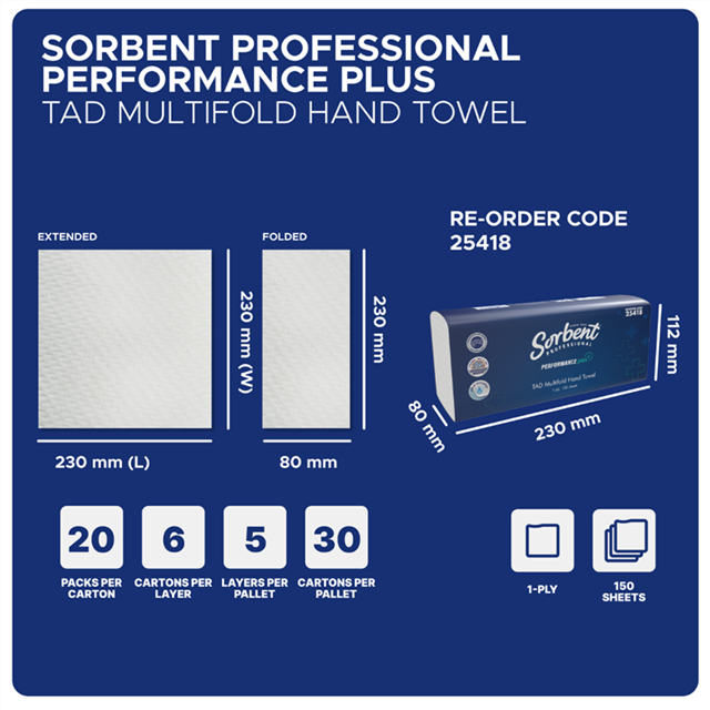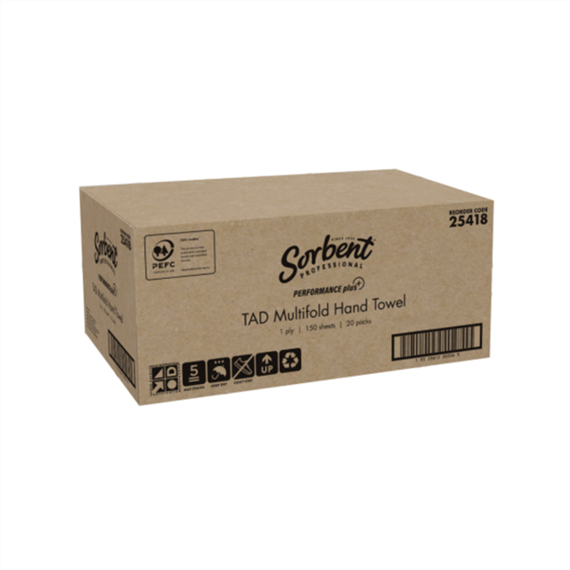 Sorbent Professional Performance Plus TAD Multifold Hand Towel 1 Ply 150 Sheets Adelaide Direct Stationers