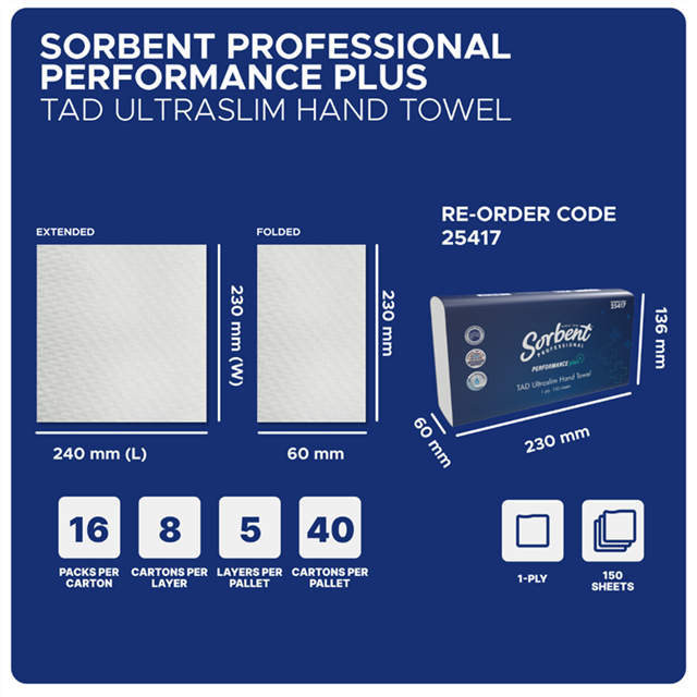 Sorbent Professional Performance Plus TAD UltraSlim Hand Towel 1 Ply 150 Sheets Adelaide Direct Stationers