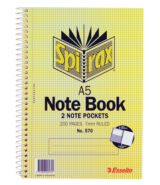 Spirax 570 Notebook 2 Pockets 200 Pages A5 (Sold as Each, 5 in a Pack) Adelaide Direct Stationers