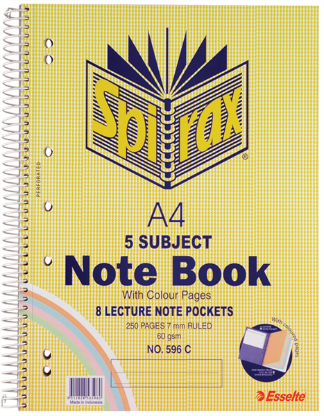 Spirax 596C 5 Subject Notebook Coloured A4 Each (Sold as Each, 5 in a Pack) Adelaide Direct Stationers