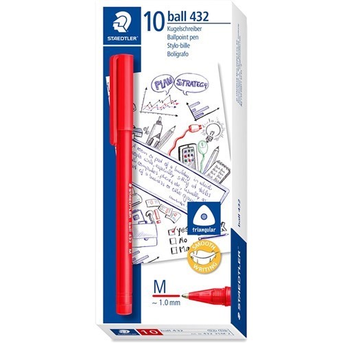 Staedtler Stick 432 Medium Ballpoint Pens Red 10 Box Adelaide Direct Stationers