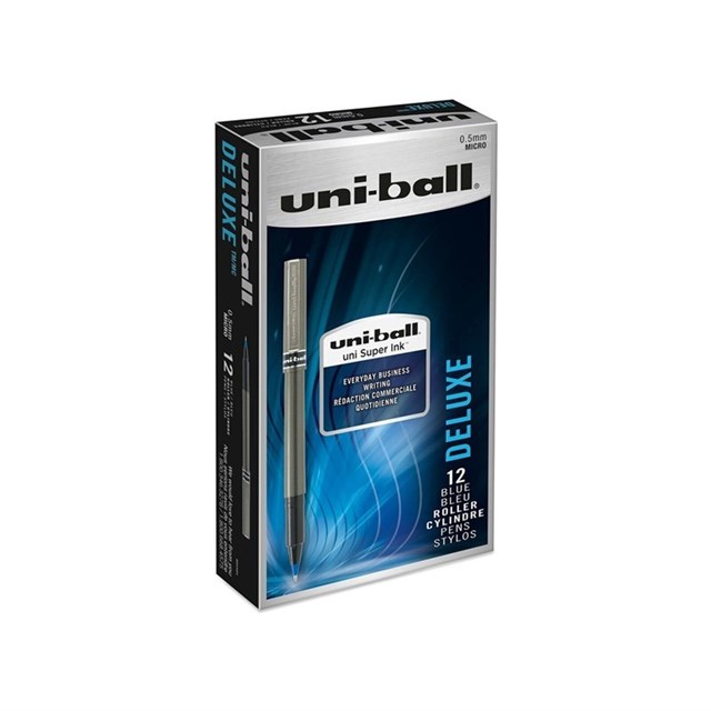 Uniball UB155 Micro Deluxe Rollerball Pen Blue 12 Box Adelaide Direct Stationers