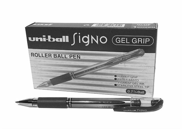 Uni-ball Signo Gel Grip rollerball features a rubber grip, stylish contemporary design and a unique twin-ball mechanism which prevents ink back-flow and leakage