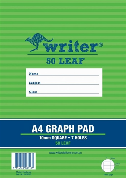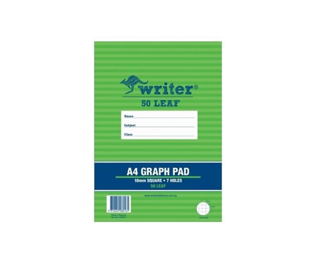 Writer Graph Pad A4 50 Leaf 10mm 7 Holes (Sold as Each, 10 in a Pack) Adelaide Direct Stationers