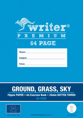Writer premium A4 64pg 24mm Dotted Thirds Exercise Bk Ground/Grass/Sky each (Sold as Each, 10 in a Pack) Adelaide Direct Stationers