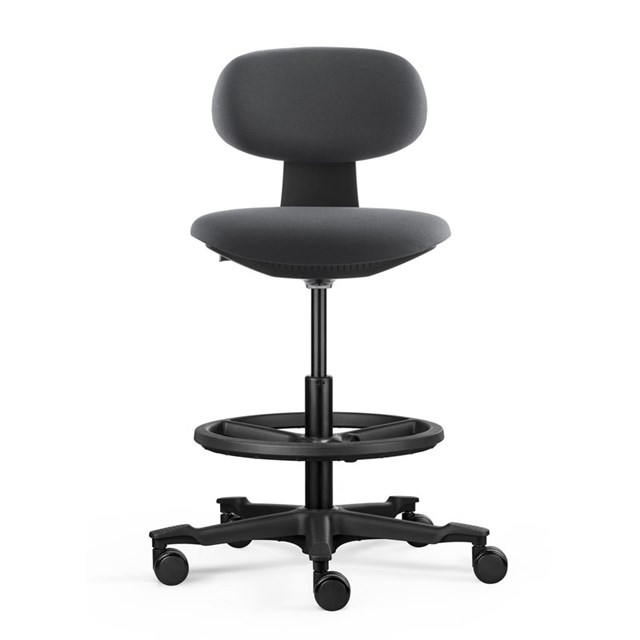 Yoyo Sit-Stand Chair - Dark Grey 450mm W x 480mm D x 820mm-1020mm H Backrest & Seat Made With Molded Foam Gabriel - Mozart FC3103 Dark Grey Fabric Finish 323W Wire-Control Height Adjustable Mechanism Black Nylon Drafting Ring - 445mm DIA XieQiang Gas Lift 200/0, Class 4 Black Nylon 5 Star Base With Top Grip Treads 60/25 PU Castors GreenGuard Gold Certified BIFMA Certified Gabriel Mozart Fabric Is 100% Renewable Polyester 15mm Ratchet Back Rest Adjustment 10 Year Warranty